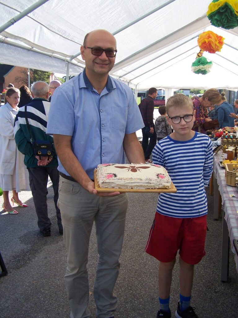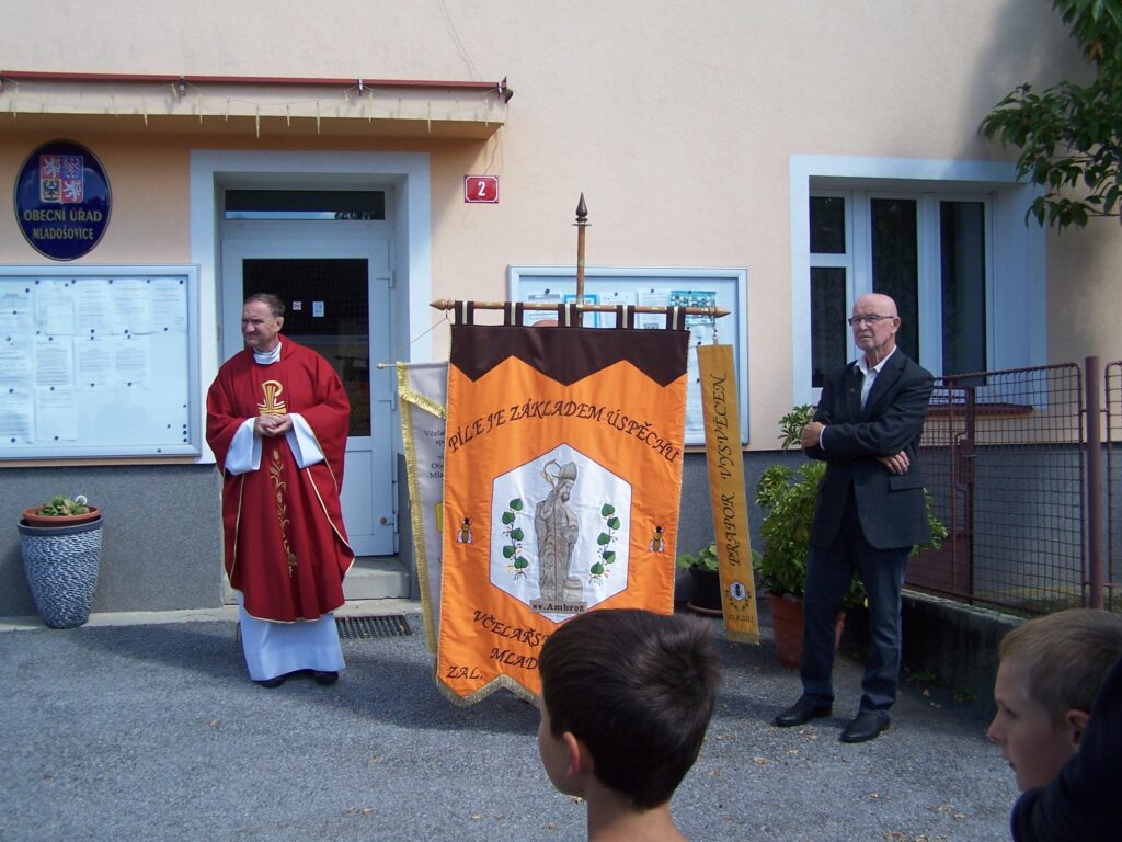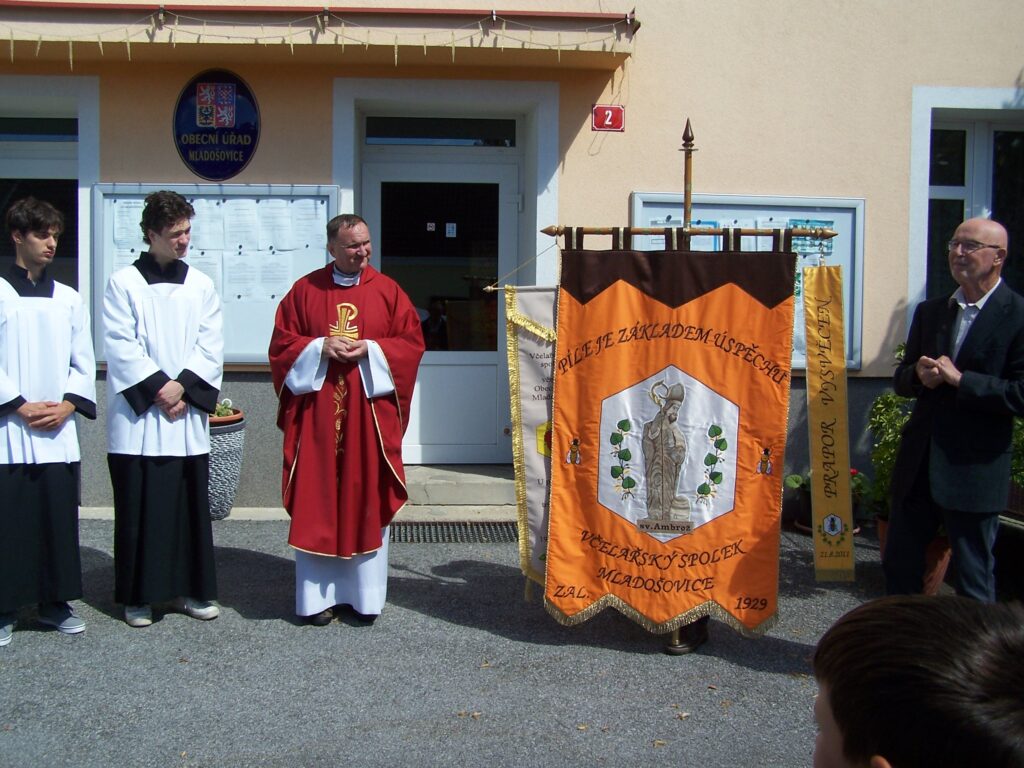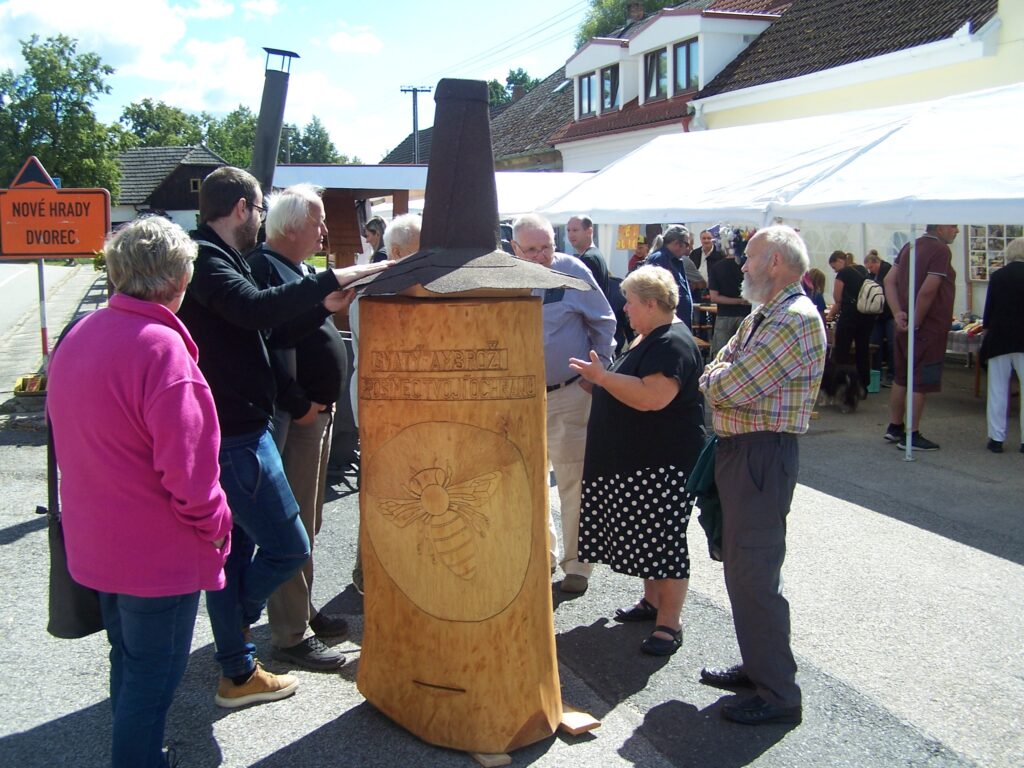 Medový den v Mladošovicích se vydařil, sv. Ambrož náš patron nás ochránil před všemi deštivými meteorologickými předpověďmi počasí a tentokrát na nás zůstaly všechny nitě suché po celou dobu konání. Jako tradičně se prodávalo medové pečivo, výrobky ze včelích produktů, samozřejmě med, medovina….. K vidění byly vystaveny různé včelařské pomůcky. Jako novinka byl prezentován kotel na vyváření celých rámků, včetně vyhřívané odstředivky. Specifičnost nového kotle je mimo jiné v tom, že jej lze lehce přemisťovat z místa na místo, neboť je opatřen dvěma automobilovými koly – jsou odnímatelné a vojem, které se připojí na jakékoliv tažné zařízení osobního auta. Kotel vyrobil šikovný včelař našeho spolku přítel Karel VONDRÁK. Při jeho výrobě jsme se společně inspirovali podobným zařízením, jaké vlastní včelaři včelařského spolku v Suchdole/Lužnicí, samozřejmě s jejich souhlasem. Včelaři nezapomněli ani na děti a na dvou pracovištích pro ně připravili zajímavý program. V dopoledních hodinách se také jako nedílná součást slavnosti uskutečnil koncert houslistky Lenky AMBROŽOVÉ společně se skupinou PARAVÁN z Českého Krumlova. Jako už tradičně, skvělá hudba v profesionálním provedení. Poté následovala mše svatá za včelaře v kostele sv. Bartoloměje. Po jejím skončení byl spolkový prapor slavnostně a za doprovodu přenesen před budovu Obecního úřadu v Mladošovicích k soše našeho patrona sv. Ambrože. Zde na tomto místě jako už tradičně předseda spolku ing. Miroslav JELÍNEK poděkoval sv. Ambroži za ochranu včel, včelařů a jejich rodin. Celé setkání zakončil svým slovem otec Jaroslav, nový borovanský pan farář. Poté se včelaři a pozvaní hosté odebrali ke slavnostnímu obědu. Toto krátké ohlédnutí se za uskutečněnou akcí můžeme zakončit konstatováním „Medový den Mladošovice 2024 se vydařil“. Předseda spolku děkuje všem, kteří se zasloužili o jeho zdárný průběh. 16. ročník Medového dne Mladošovice skončil, ať žije ročník 17.